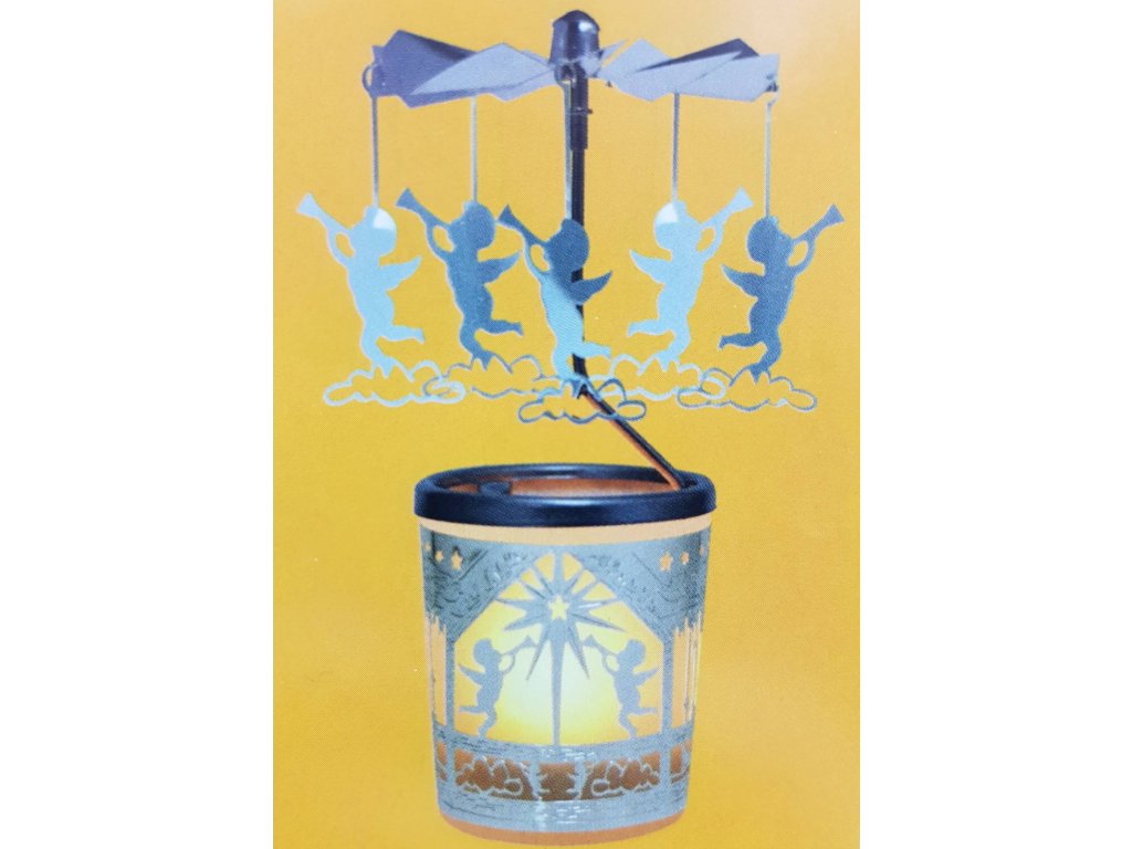 Otočný svícen. Dovnitř můžete vložit svíčku a díky stoupajícímu teplu se turbína začne točit. Výrobek je zabalen v malé elegantní krabičce. Čajova svíčka je součástí balení. Veškeré informace s vámi sdělíme na tel. 775 71 72 31
